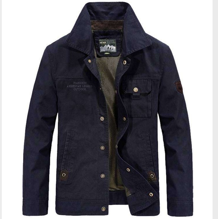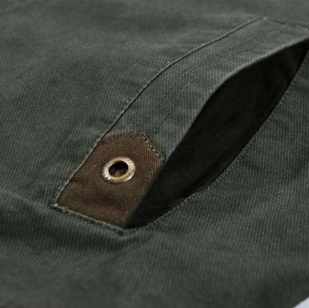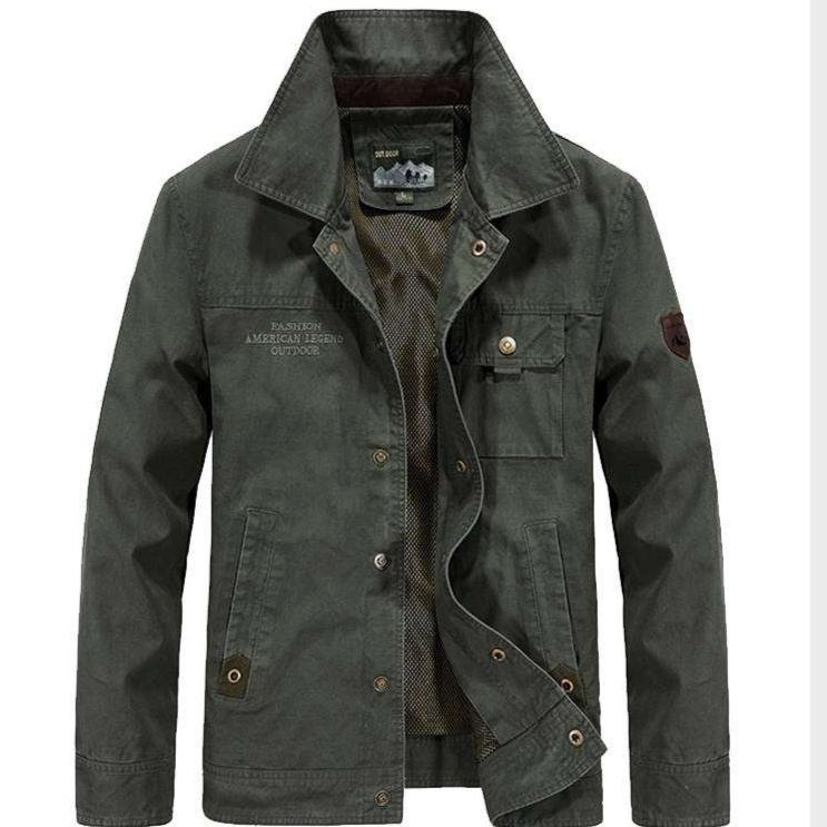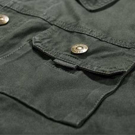 耐久性に優れた高品質な生地を使用したミリタリージャケット。m-65タイプの実用的なデザインで、フロントポケットと刺繍ロゴがアクセントに。
