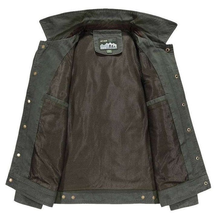 襟元の特徴的なスタイルと金具使いが上品な雰囲気を演出し、タフで機能的な一着として日常使いにも最適。