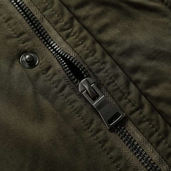 スナップボタンとジッパーの二重構造で、雨風をしっかり防ぎます。