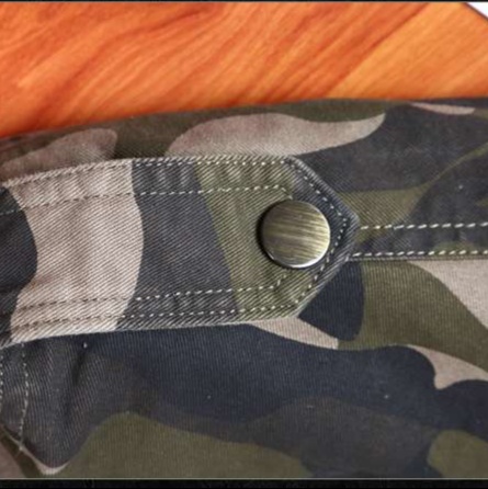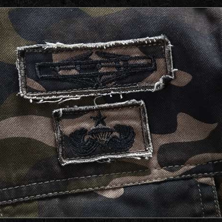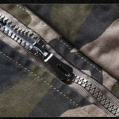 伝統的な迷彩柄をベースに、パッチワークとジッパーで個性を演出。