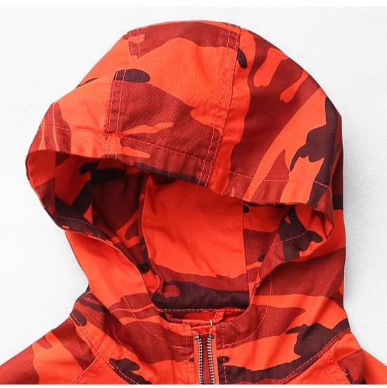 フルジップ仕様で着脱が容易で、迷彩柄がスタイリッシュな印象を演出。