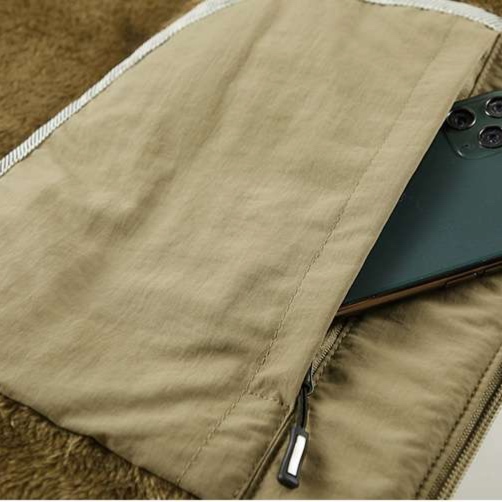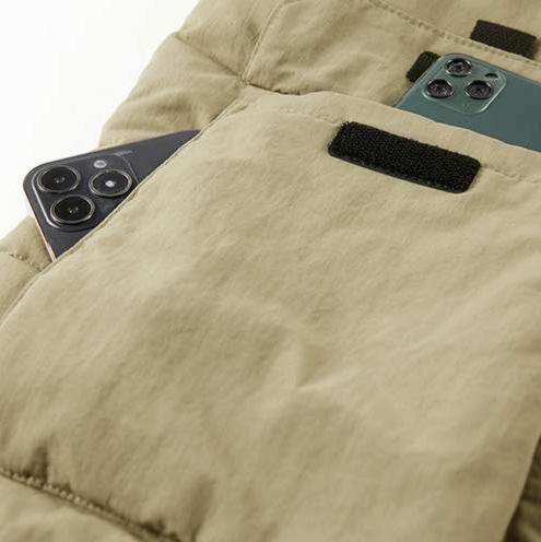 スマートフォンや小物が収納できる実用的なポケットで機能性抜群