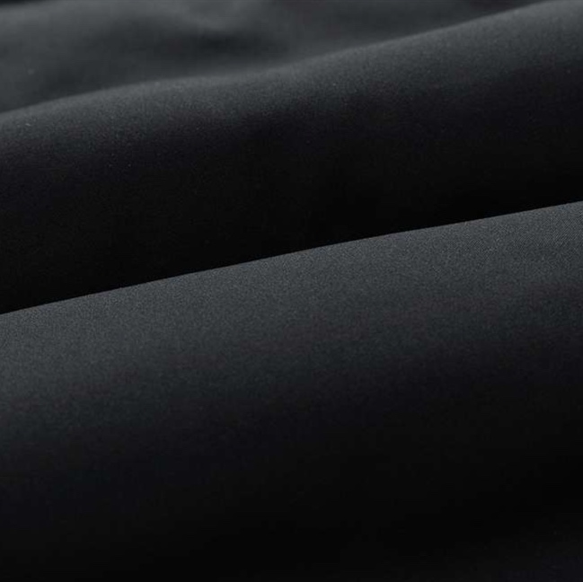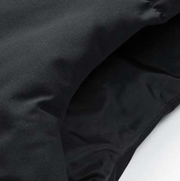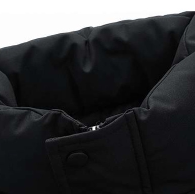 首元まで包み込むハイネックで、防風性と保温性を兼ね備えた実用的な仕様
