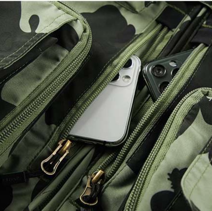 豊富な収納ポケットと通気性の高いメッシュ素材を組み合わせた機能的なデザイン。