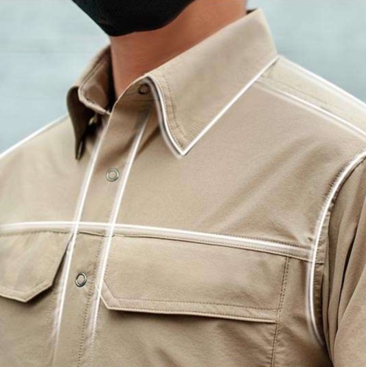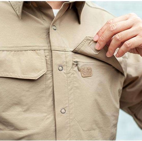 ミリタリージャケット専門ショップからの一押し、ミリタリーシャツ。大胆な胸元のフラップポケットと、自在に腕まくりできる袖デザインが特徴。機能性と実用性を融合させた新しいワークウェアスタイルで、タフな日常をサポート。ミリタリーのエッセンスを取り入れながらも、洗練されたデザインが魅力的。あなたのアウトドアやカジュアルコーデにぴったりな一着。