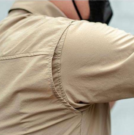肩周りの立体裁断と伸縮性のある素材で動きやすさを重視