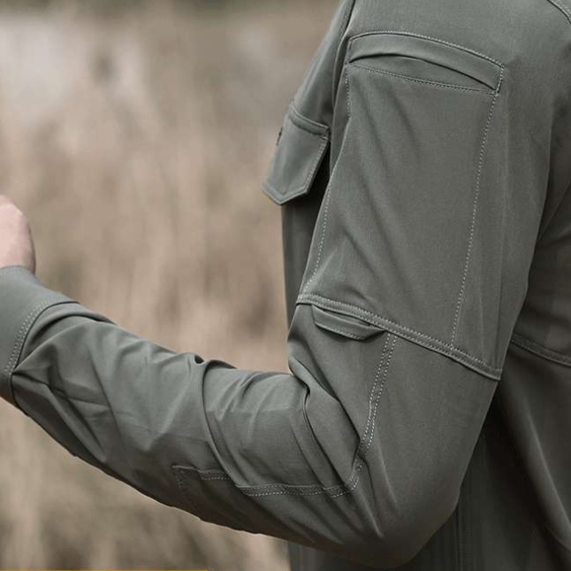 胸や腰周りの実用的なポケットが戦術的な動きをスムーズにサポート