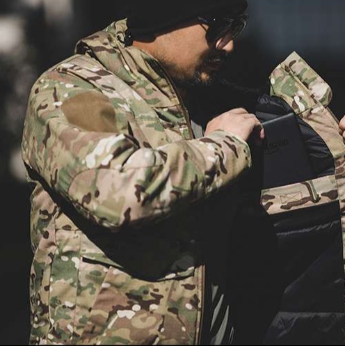 フードつきデザインと複数の実用的なポケットを備え、都会的なスタイルと機能性を両立。迷彩柄が男らしさを引き立てる一着です。