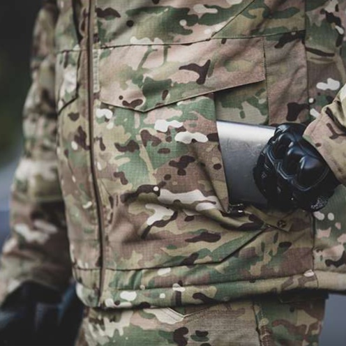 本格派ミリタリージャケットのm-65タイプ。軍用開発の高性能素材を採用し、優れた耐水性を持つ表地と放熱性の高いメッシュ裏地を組み合わせました。