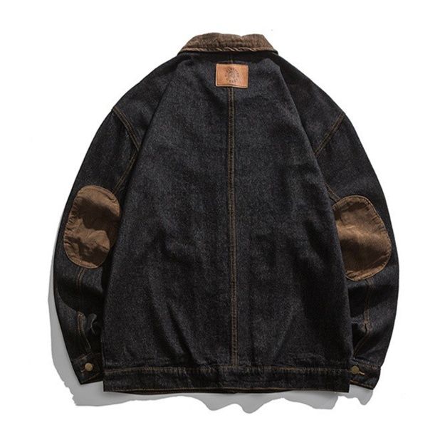 丈夫なデニム生地に異素材の切替がアクセントとなり、エルボーパッチが機能性と独特の雰囲気を演出しています。