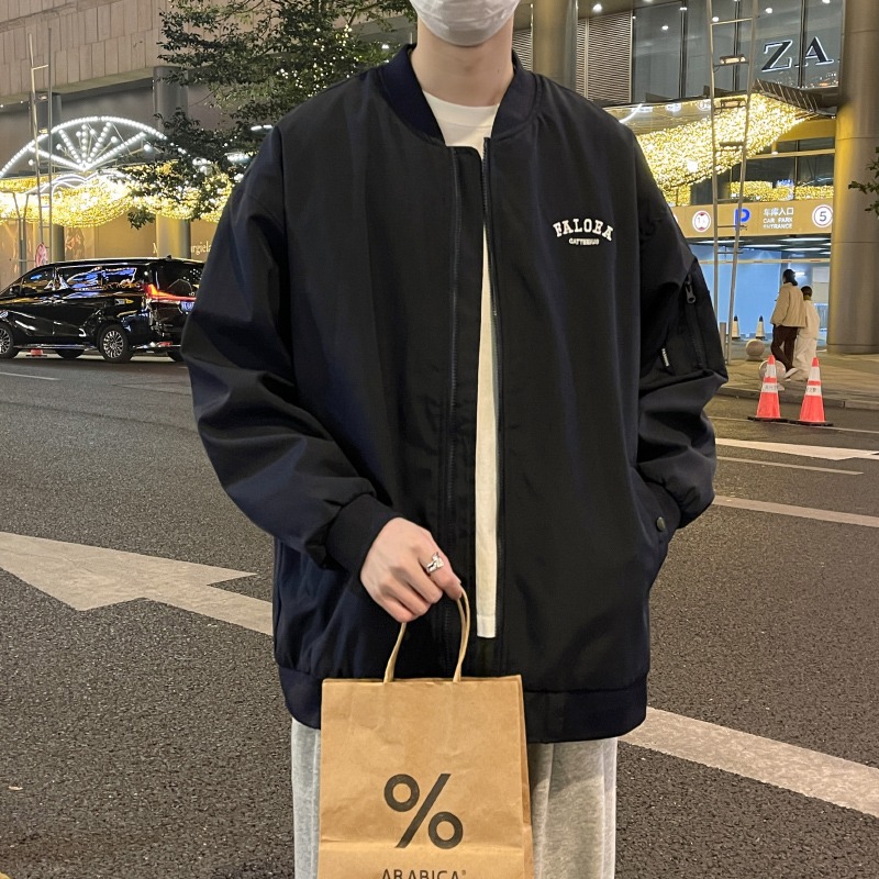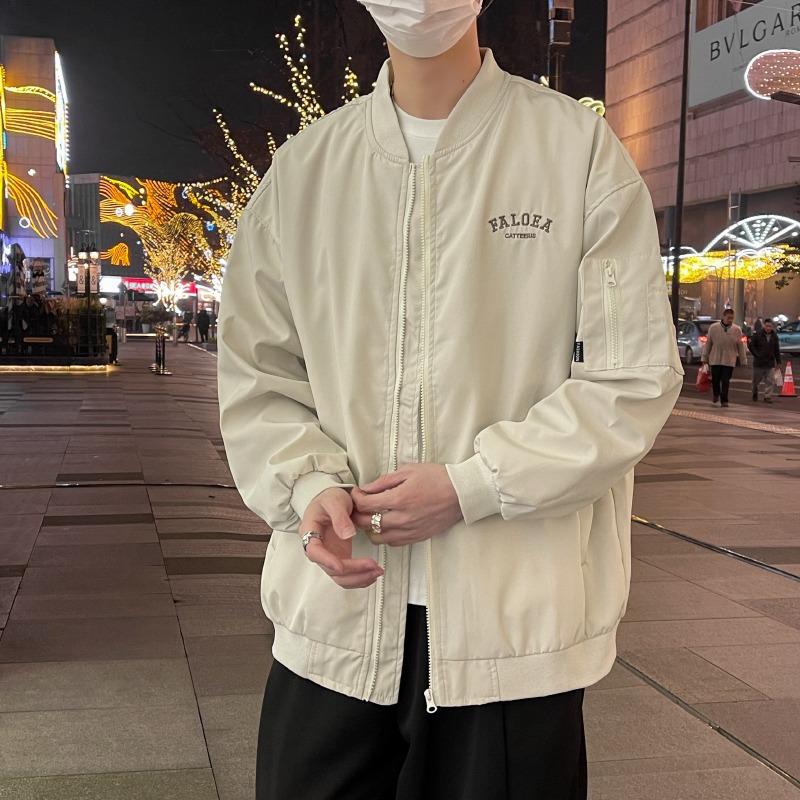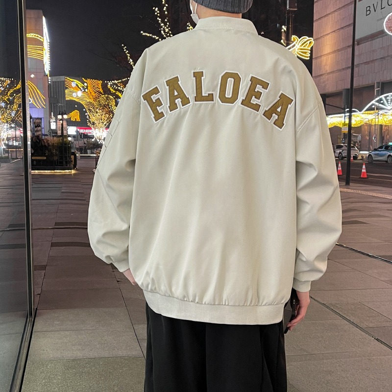 飛行隊風のデザインが特徴的で、胸元と背面には大きな刺繍ロゴがあしらわれています。