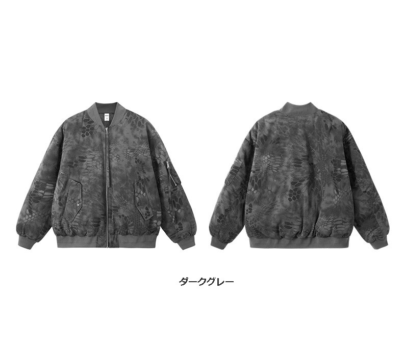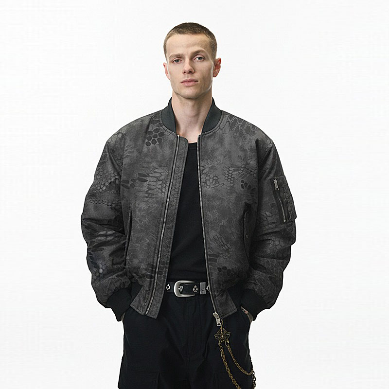 迷彩柄とスネーク柄を組み合わせた独特なデザインが印象的なブルゾンです。