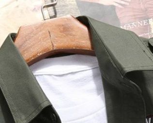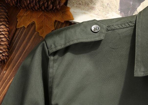 本格的なミリタリーシャツは、胸元の大きなフラップポケットがアクセントになったデザインです。